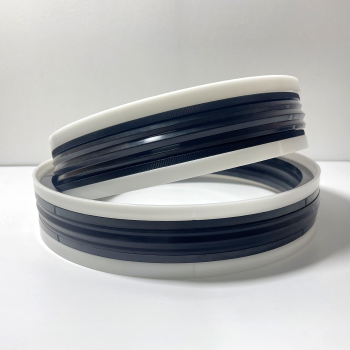 TPM состоит из пяти частей: центральная часть - нитрильный каучук, два полиэфирных опорных кольца и два направляющих кольца из полиоксиметилена. Эта уникальная комбинация создает очень низкое трение в условиях работы под высоким давлением. Он прост в установке, обладает высокой износостойкостью, высокой устойчивостью к экструзии и минимальной деформацией.